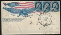 #65 tied by New York double ring cancel (1862) on "LIBERTY and UNION forever" patriotic cover produced by Magee Our Price=$125.00