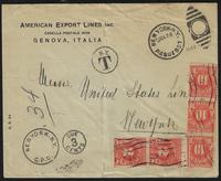 1940 usage of J81 & J84 tied on cover w/ NEW YORK PAQUEBOT duplex cancel to New York. Unfranked postaged due collected for several letter. AMERICAN EXPORT LINES c.c. Our Pric=$15.00