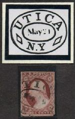 Sc. 10-X-1 VF appearing example of1846 POSTMASTERS' PROVISIONAL w/ original gum (Purchased from Kelleher in 1957-accompaning document) Our Price....$300.00