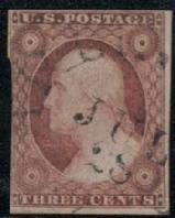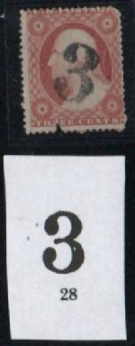 Sc. 26 FINE appearing example w/ small faults & Nashua, NH "RATE NUMERAL '3'" cancel (Simpson#28 rarity 6) Our price=$75.00