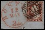 Sc. 63 VF-XF strip of 3 on piece w/ PAID cancels & double ring BOSTON cancel Our Price.....$450.00