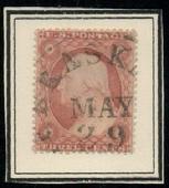 Sc. 26 F-VF "Genuine used w/ Red Grid cancel, top row copy Plate #26 A Relief w/ damaged transfer & Guide dot in upper right. Some sulfuretting of ink in oval & at lower right" Includes PSAG graded certificate (75) Our Price....$65.00