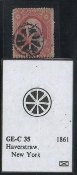 Sc. 26 FINE appearing example w/ small faults & Haverstraw, NY "CIRCULAR GEOMETRIC" cancel (Skinner-Eno GE-C-35 rarity 3) Our Price=$25.00
