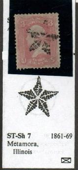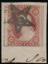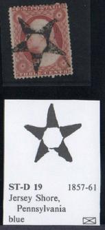 FINE appearing example w/ SOTN Jersey Shore, PA "5 POINT STAR" cancel (Skinner-Eno ST-D-19 rarity 4) Our Price=$45.00