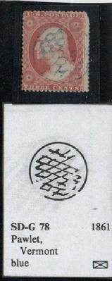 Sc. 26 AVERAGE appearing example w/ PAWLET, VT cancel (Skinner-Eno SD-G-78) rarity 4 Our Price=$45.00