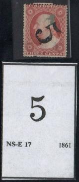 Sc. 26 F-VF appearing example w/ small faults & "NUMERAL '5'" cancel (Skinner-Eno NS-E-17 rarity 3) Our Price=$30.00