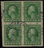 Sc. 408 VF-XF block of 4 w/ faint duplex cancels Our Price=$6.00