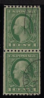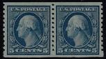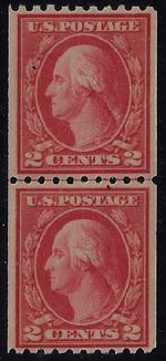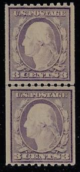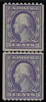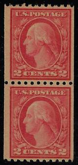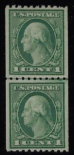 Sc. 496a FINE appearing never hinged SMALL HOLE example coil pair catalog value=$450.00 Our Price=$275.00